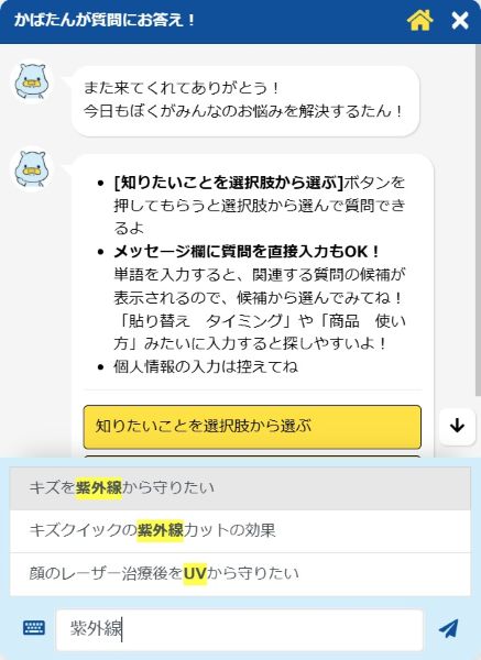 そうしますと、Instagramから『さっとFAQ』に来たユーザーが、メッセージ入力欄に「紫外線」と入力すると、紫外線に関する知識はもちろんのこと、紫外線カットの効果を持つ製品を案内しますので、より製品を知ってもらうきっかけとなりますので、大変有効な仕組みだと思っています。