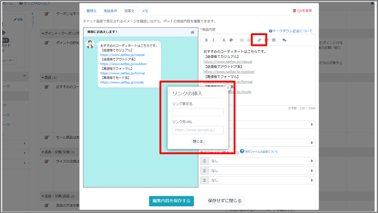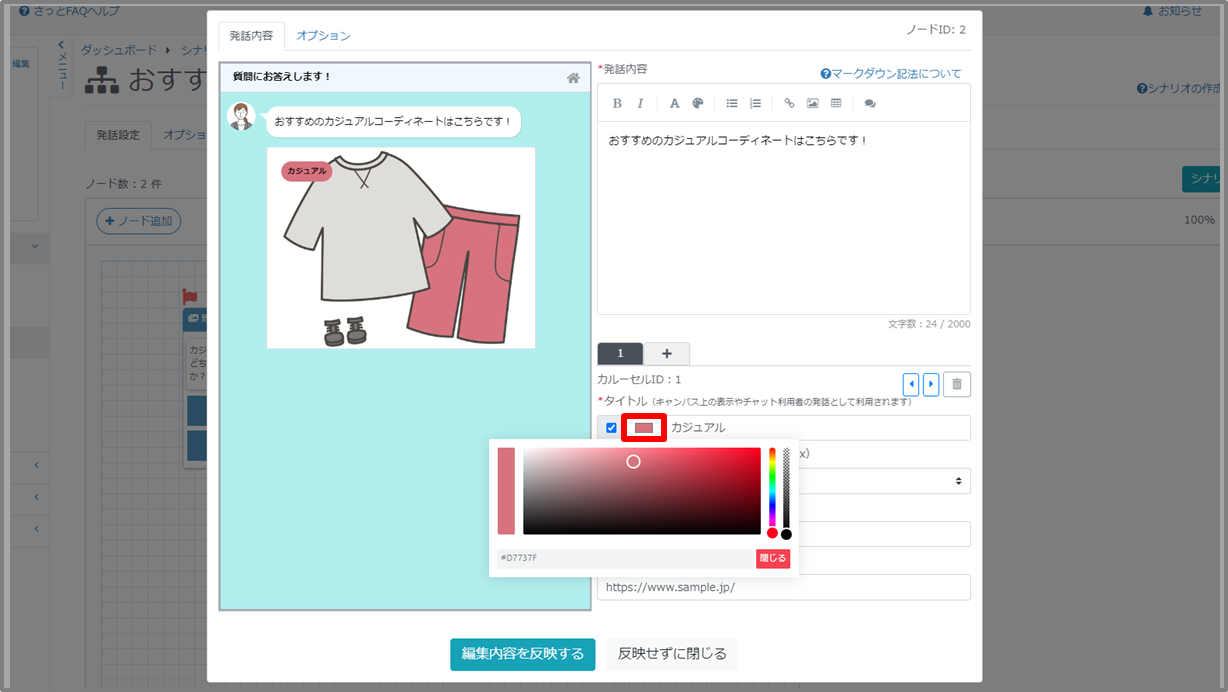 回答(画像)ノード:画像をクリックすることで、「リンク先URL」に設定されているリンク先へ画面遷移します。