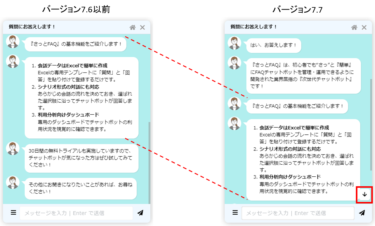 またバージョン7.7では、表示領域よりも下に発話内容が存在する場合、右下の矢印で最下部の発話内容までスクロールが可能になります。