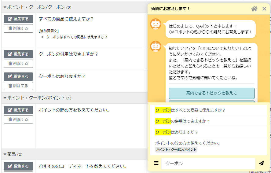 バージョン8.9では、追加質問文やトピックが一致した場合にそれらを表示する、新たな表示方法を追加しました。