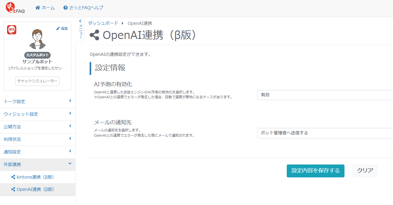 ・本機能の利用における知的財産権の取り扱い、禁止事項、個人情報の取り扱い等、本注意事項に特に記載のない事項については「さっとFAQ利用規約」を準用します。