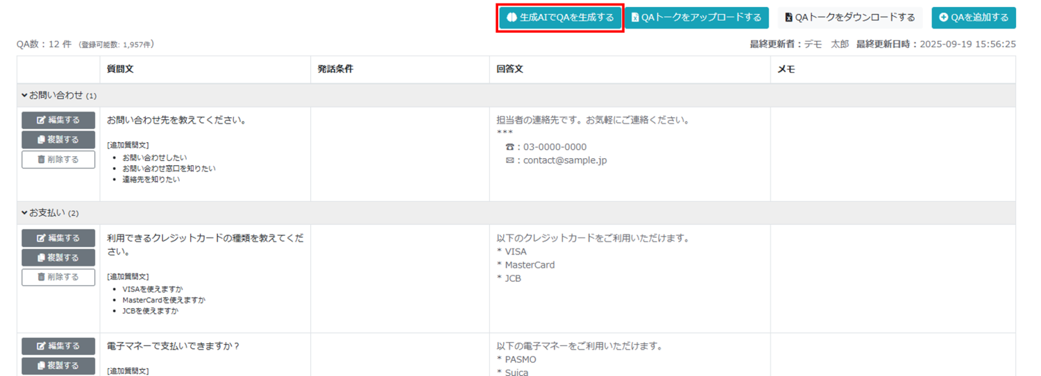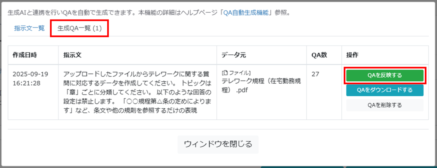 2)QA自動生成機能の追加