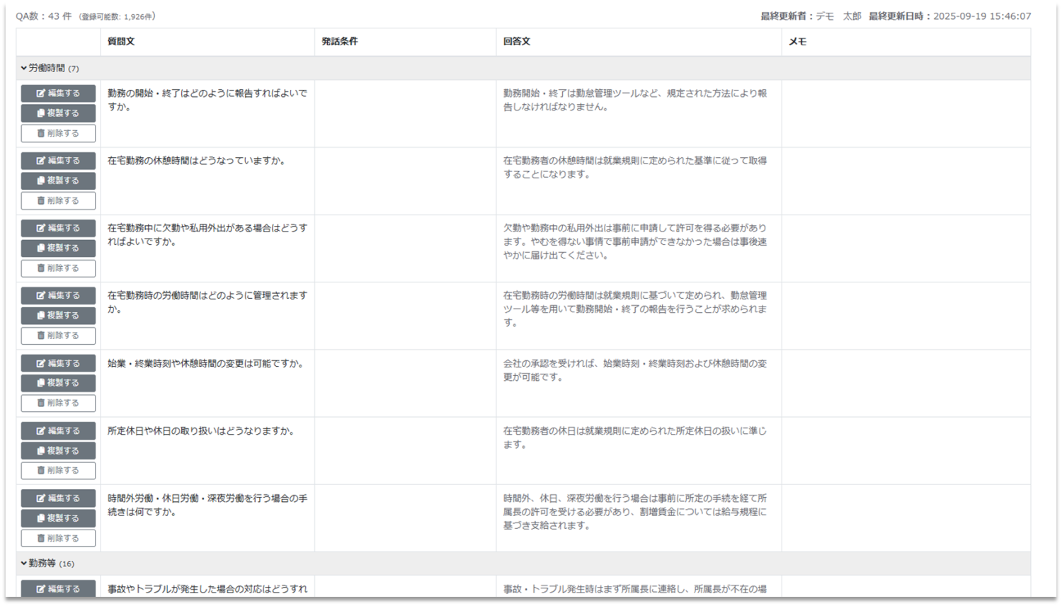 応用として、同じボットであってもユーザーの属性や設置場所、利用環境に応じて表示するQAを切り替えるなども可能となります。